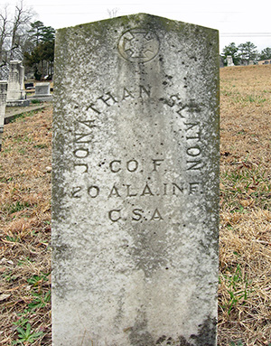Jonathan Slaton served in the 20th Alabama Infantry Regiment, Company F. This company