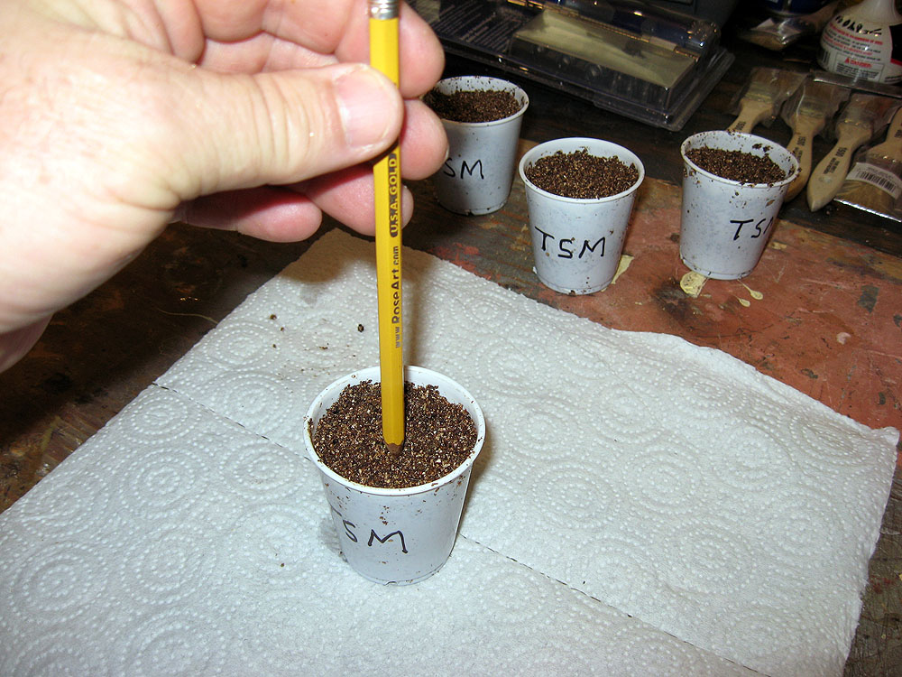 Fill the cup nearly up with seed starting mix, drop the seen in and cover with 1/4" of