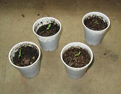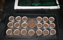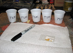 and small (3 oz) plastic bathroom cups for starting seeds. I plant two to five seeds per